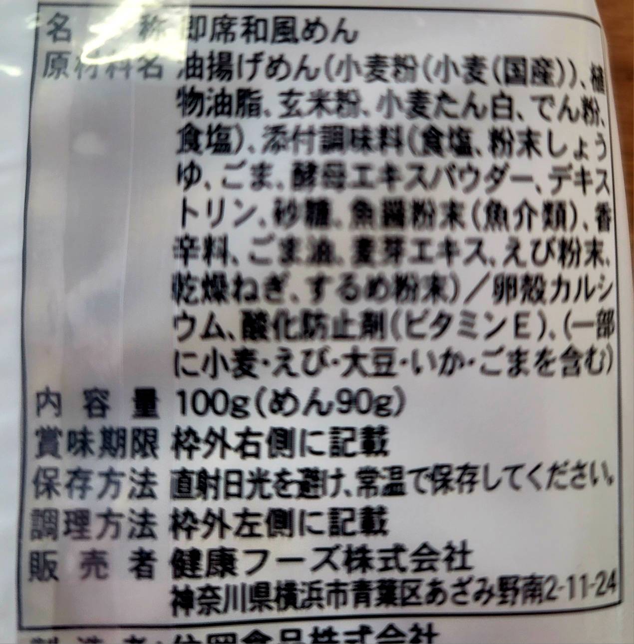 原材料名:油揚げめん(小麦粉(小麦(国産))、植物油脂、
